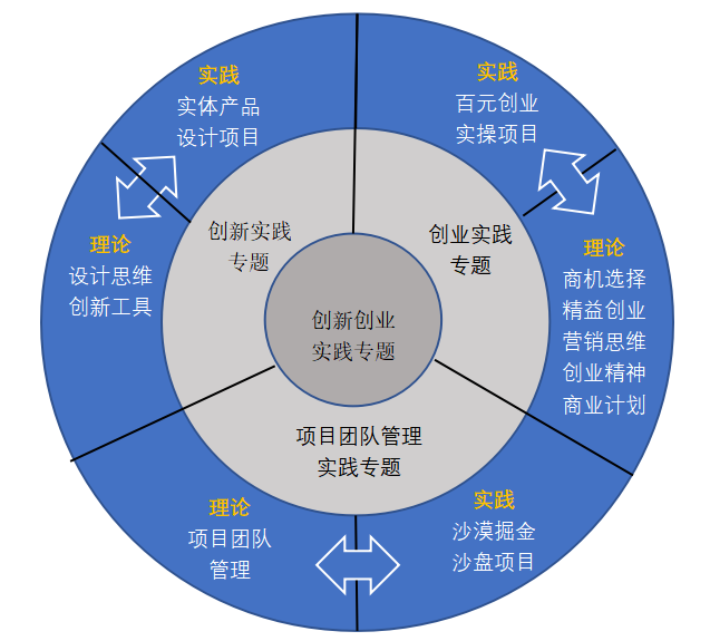 《创新创业实践专题》课程基于大学生创新创业能力的培养,由三大专题组成: