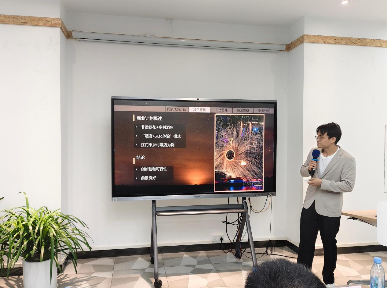 结业展示环节,“云山卓越班”学员组建的7个项目团队依次登台,围绕各自的创新创业项目进行路演答辩。各小组结合所学知识,展示了涵盖互联网科技、国风创意、社会服务、乡村振兴、校园文创等多个领域的创意项目,充分展现了广外学子扎实的专业素养和敏锐的市场洞察力。现场评委对项目进行了细致点评,并就商业模式、市场前景、后续发展方向等向各位学员提出了宝贵建议。