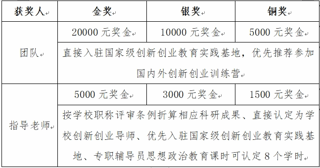 校赛奖励不叠加计算,按最高标准给予奖励。校赛各赛道设金奖1名、银奖2名、铜奖3名、优秀奖若干名,奖项内容具体如下: