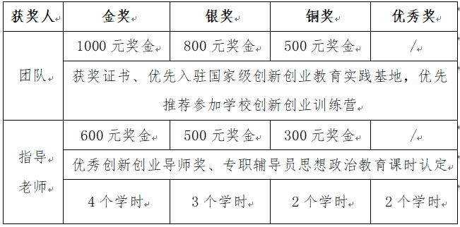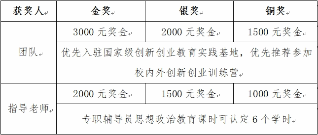 奖项分为教育部、广东省和学校奖项,教育部、广东省的奖励内容以上级文件为准,详情可登录“全国大学生创业服务网”(cy.ncss.cn)了解。