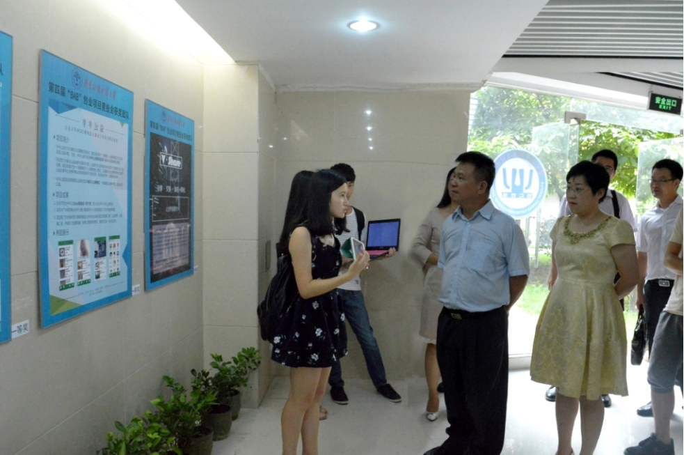在刘海春等的陪同下,武一婷一行参观了伟德国际1946学生创业实践基地,并共同为伟德国际1946的“青创空间”孵化中心揭牌。伟德国际1946是高校共青团“青创空间”孵化中心首批30个示范点之一,学校严格按照“五个一”(即一个固定阵地、一个稳定服务团队、一套管理和服务办法、一套校内政策支撑制度、一套校外市场支撑制度)的标准创建示范点,在大学城校区南苑10栋学生宿舍一楼的创业实践基地设置“青创空间”,为在校大学生提供办公场地、导师辅导、信息咨询、辅助培训、专利申请和代理登记等全方位的创业服务。