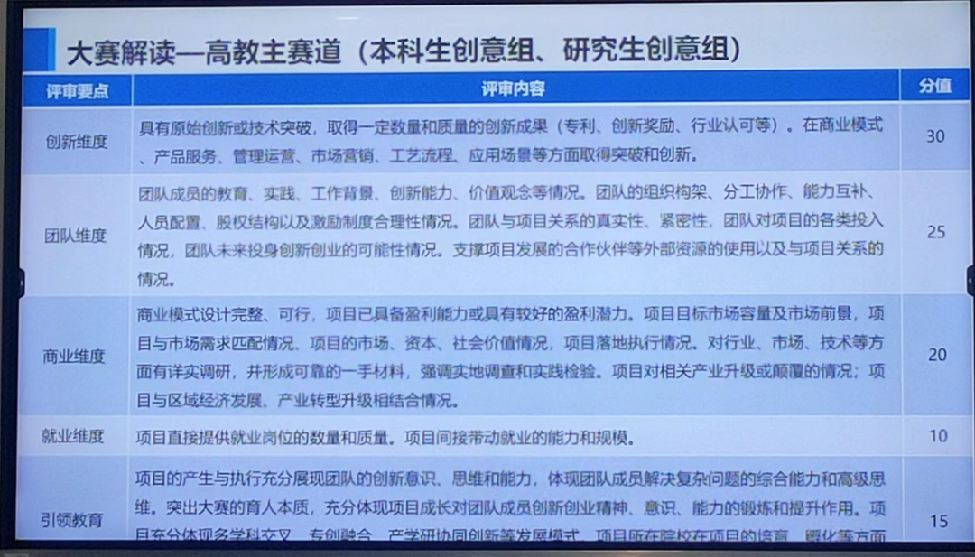 对于高教主赛道,创新维度和商业维度的分值是都是难以把握的。在没有标准的情况下评委会通过项目落地案例来评估商业模式是否完整、可行。